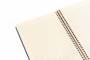 KOZO Premium Notesbog er absolut en af de flotteste notesbøger på markedet. Det kraftige lærreds omslag med smukke detaljer i bronze og den kraftige topspiral, også i bronze, gør at den er perfekt at skrive og notere i, både når du har den liggende på knæet eller endda stående uden at have støtte. Og selvfølgelig en smuk indretningsdetalje til dit skrivebord. Det giver en luksuriøs følelse at skrive på det cremefarvede 100 g. papir. Samtlige sider i notesbogen har en datolinie øverst til højre, enkelt og praktisk. Matcher med alle andre KOZO skrivebordsartikler i samme farvenuancer.