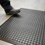 Kuglemåtte i naturgummi med størrelse 600 x 900 mm, tykkelse 14 mm og farve sort.Et godt alternativ for god ergonomi ved stående arbejde. Måttens profil og elasticitet stimulerer blodcirkulationen og forebygger kramper, cirkulations- og træthedsproblem i fødder, ben og ryg. Produceret i naturgummi, noget som giver lang levetid og høj rive- og slidstyrke. Måtten passer til brug i værksted- og træindustri, ved pakkediske og i receptioner.Kuglemåtten leveres i stk.