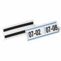 Lagerlomme/etiketholder i PET-plast med 2 magnetstriber på bagsiden. Til brug på f.eks. butiks- og lagerreoler i metal