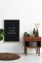 Bogstavstavle med trærammeIndrammet bogstavstavle i sort filt og træramme i massivt Paulownia træ (Kejsertræ). Bogstavstavlen kommer med 149 stk. udskiftelige, hvide bogstaver og tal med en højde på 2,5 cm. Tavlen måler: 40 x 50 cmDen fine bogstavstavle er nem at bruge, så du kan skifte imellem dine egne tekster fra dag til dag. Har du et yndlings digt, inspirerende tekst eller måske favorit omkvæd i en sang, så kan du nemt vise det frem på bogstavstavlen. Bogstavstavlen er perfekt til dig, som ønsker et personligt præg i hjemmet. Dertil er det også meget anvendelig på kontorer, cafeer og restauranter.Bogstavtavlen har ophængskroge på bagsiden, og er nem at hænge op på 2 skruer.Ekstra sæt med bogstaver kan købes separat.