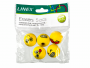 5 stk. Emojis viskel?der med forskellige udtryk. Med hul s? de kan anvendes som topviskel?der. ? 25mm, PVC fri.