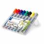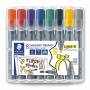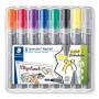 Lumocolor® flipchart marker i høj kvalitet. Ideel til brug på papir, da ink'en ikke trænger igennem papiret. Farve intensiv og lugtsvag. Tørrer på sekunder, derfor ideel til venstrehåndede brugere. Indeholder DRY SAFE BLÆK som gør, at den kan ligge uden hætte i dagevis uden at tørre ind. Perfekt til mødelokalet. Stand-Up STAEDTLER box. Genopfyldelige. Indeholder 8 assorterede farver, heraf 6 ass. med rund spids Ø2 mm, og grå samt gul med skrå spids 2-5 mm, disse er perfekte til at fremhæve tekst ved hjælp af skygger eller overstregning.