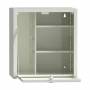 Medicinskab med to flytbare hylder og en skillevæg til vægophæng. Skabet er udstyret med en elektronisk lås, Assa Sense+, der har logfunktion.Den venstre del rummer en A4 ringbind. Farve hvid, RAL 9003. Mål (hxbxd): 380x350x310 mm.