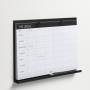 Metal tavle 31 x 23 x 3,5 cm. Sort.Med indbygget pennebakke. 2 huller til ophæng med skruer i væggen.Incl. Engelsk A4 blok med ugeplan, 52 sider, 120 gr.Ekstra planlægnings blokke kan købes seperat.