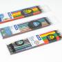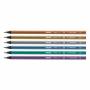 Blyanter i metallic-farve lavet af sort, limet træ. Ergonomisk trekantet form, giver en jævn streg og er modstandsdygtig over for brud. Træet kommer fra bæredygtige skove. Pakken indeholder seks blyanter i forskellige metalfarver: kobber, guld, sølv, blå, grøn og lilla.