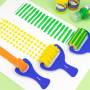 Mønsterrulle fra MILAN som maler vandrette striber. Kort blåt plasthåndtag. Velegnet til akvarel, vandbaserede teknikker og plakatmaling. Bredde: 69 mm. Diameter på rulle: 42 mm. Samlet længde: 141 mm.