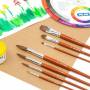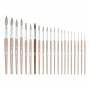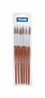 Rund pensel med kort brunlakeret træskaft og aluminiumshylster. Børsten består af 70% naturligt gedehår + 30% syntetisk. Velegnet til akvarel og vandbaserede farver. Diameter: 6 mm. Længde børster: 26,2 mm. Længde pensel: 200mm. Sælges i poser med 6 pensler med eurohul. Posen måler: 250x70x8mm