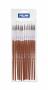 Rund pensel med kort brunlakeret træskaft og aluminiumshylster. Børsten består af 70% naturligt gedehår + 30% syntetisk. Velegnet til akvarel og vandbaserede farver. Diameter: 4,2 mm. Længde børster: 20 mm. Længde pensel: 185mm. Sælges i poser med 12 pensler med eurohul. Posen måler: 240x90x5mm.