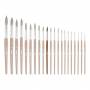 Rund pensel med kort brunlakeret træskaft og aluminiumshylster. Børsten består af 70% naturligt gedehår + 30% syntetisk. Velegnet til akvarel og vandbaserede farver. Diameter: 5 mm. Længde børster: 21,2 mm. Længde pensel: 191mm. Sælges i poser med 6 pensler med eurohul. Posen måler: 245x70x8mm