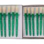 Rund pensel med kort grønt plastikskaft. Skaftet er udstyret med en kant som både minimerer farvepletter fra børsten og gør det muligt at lægge penslen på bordet uden at overfladen tager farve eller penslen ruller. Børsten er lavet af naturlige Chungking-svinebørster. Velegnet til akryl, lim, lak og plakatmaling. Diameter på børste: 12,7 mm. Længde på børste: 37 mm. Længde på pensel: 186 mm. Sælges i kasser med 12 pensler.