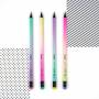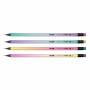 HB grafit blyanter fra MILAN fremstillet af sort lime træ i flotte farver og med matchende kvalitetsviskelæder (gul, lilla, pink og turkis). Blyanten er rund og medium hård, hvilket gør den velegnet til at skrive og tegne. HB bly sikrer en ensartet streg og brækker sjældent takket være LPS (Lead Protection System). Stiften har en bredde på 2,2 mm. Leveres i sælgende display og indeholder 6 blyanter af hver farve (gul, lilla, pink og turkis). Træet kommer fra bæredygtige skove. Sunset serien.