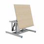 Et komplet motordrevet CE-mærket vinklingsbart bord med 2-søjlet stel, arbejdsfladen kan vippes op til 75º. Arbejdsfladen kan forlænges med 315 mm ved at flytte forkantlisten. Forkantlisten kan fungere som støtte eller som hylde til værktøj, men produkter på bordet SKAL skrues fase ind i bordrammen eller i bordpladen. Regulering af arbejdshøjde og vinkling sker med håndbetjeninger placeret til højre eller venstre side af stativet. Dette vippebord er tænkt som et ergonomisk og rationelt monteringsbord. Alle bordstativets ståldele er fuldsvejste og bordet er meget stabilt. Montagebordet leveres færdigmonteret og funktionstestet. leveret på en EUR palle. Komplet med bordplade. Hjulsæt fås som tilbehør varenummer 624802.