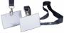 Navneskilt click fold rpp 54x90, halssnor Letvægts konveks foldbart navneskilt med unik klikmekanisme, med et halssnor med sikkerhedslås. Størrelse 54x90 mm. 10 stk. pr. æske.