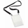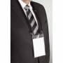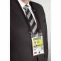 Gør indtryk ved konferencer og udstillinger, med dette ekstra store navneskilte hvor du kan se deltagernes navne på forsiden og på bagsiden samt tidsplaner osv. Lommen i pp-plast har topåbning til hurtig indsættelse samt fjernelse af et A6 ark og er kombineret med en 20mm bred tekstil halsbånd med to karabinhager med sikkerhedslåse der åbner hvis halsbåndet sidder fast. To fastgørelsespunkter af halsbåndet bevirker at navneskiltet altid hænger i den rigtige position. Med ekstra lomme på bagsiden til visitkort. Mål indstik: A6 høj. Længde 44 cm.