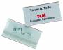 Navneskilt m nål 30x60 mm lille pakke Navneskilt af robust plast med sikkerhedsnål. 10 stk.