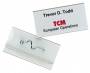 Navneskilt med buet sikkerhedsnål, der tillader navneskilt afholdt i position. Nålespidsen er skjult for at forhindre skader på tøj. Enkelt at udskifte navneetiketter ved hjælp af tommegreb. Indstik medfølger. Mål indstik: 30x60mm (HxB). Indstiksetiket på A4 ark til udskrivning i printer kan bestilles separat (varenr. 145102). Design selv en personlig designet kongresmærke med gratis skabelon på www.duraprint.dk
