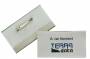 Navneskilt m nål 40x75 mm Navneskilt af robust plast med sikkerhedsnål og mulighet at fastgøre i brystlomme. 100 stk.
