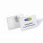 Navneskilt med kombiklemme 54x90mm (HxB). Kombineret sikkerhedsnål/klemme giver valgmulighed for at fastsætte på tøjet. Med tommelgreb som gør det enkelt at udskifte indstiksetiketten. Indstik medfølger. Mål indstik: 54x90m (HxB). Indstiksetiket på A4 ark til udskrivning i printer kan bestilles separat