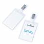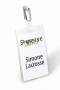 Navneskilt m stropklemme 90x60 mm Navneskilt af robust plast med stropklemme der samtidigt lukker åbningen på lommen. Højformat.