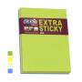 Selvklæbende store Sticky Notes uliniert, fastgøres overalt igen og igen uden at beskadige underlaget. EXTRA STICKY: Klæber perfekt på plast, karton, glas og mange andre overflader. Fire farver; lemon, lime, yellow og blue. 45 ark pr. blok. 203 x 150 mm.
