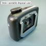 Beskrivelse af NT Cutter Portabel Disposal Case til Knivblade Metalbeholder til brugte knive med indbygget knivsnapper. Slidstærk og let beholder i støbt aluminium med clips til fastgørelse i bæltet.