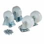 Sæt med 4 stk. Ø160 mm nylonhjul (2 faste og 2 svingbare hjul) til montering på tipcontainer, velegnet til brug uden truck eller palleløfter. Anbefales at bruge, hvis tipcontaineren ofte bruges forskellige steder, måske primært indendørs.Nylonhjul er hårdere end gummihjul, og bør bruges til tungere belastninger på containeren. Hjulsættet leveres komplet med det nødvendige festemateriale.