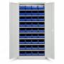 Opbevaringsskab ASPB model 1 er et komplet skab med plastkasser, bestående af det helsvejste stålskab ASHV med lysegrå døre og størrelse 1980 x 980 x 470 mm, i kombination med nødvendig antal hylder og 36 x 2068, blå modulbokse med d x b x h = 400 x 230 x 150 mm.Med opbevaringsskabet ASPB får du en låsbar og meget overskuelig opbevaring af dine smådele. Etiketter for opmærkning af kasserne medfølger. Ønsker du yderligere opdeling af kasserne, bestiller du i tillæg tilhørende deleplader. Kapacitet pr. hylde er 80 kg, jævnt fordelt.