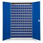 Opbevaringsskab ASPB model 2 er et komplet skab med plastkasser, bestående af det helsvejste stålskab ASHV med blå døre og størrelse 1980 x 1200 x 470 mm, i kombination med nødvendig antal hylder og 130 x 2111, blå lagerkasser med d x b x h = 400 x 115 x 100 mm.Med opbevaringsskabet ASPB får du en låsbar og meget overskuelig opbevaring af dine smådele. Etiketter for opmærkning af kasserne medfølger. Ønsker du yderligere opdeling af kasserne, bestiller du i tillæg tilhørende deleplader. Kapacitet pr. hylde er 80 kg, jævnt fordelt.