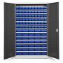Opbevaringsskab ASPB model 4 er et kompletskab med plastkasser, bestående af det helsvejste stålskab ASHV med antracit døre og størrelse 1980 x 1200 x 570 mm, i kombination med nødvendig antal hylder, 60 stk lagerkasser med størrelse 500 x 115 x 100 mm og 35 stk lagerkasser med størrelse 500 x 230 x 100 mm.Med opbevaringsskabet ASPB får du en låsbar og meget overskuelig opbevaring af dine smådele. Etiketter for opmærkning af kasserne medfølger. Ønsker du yderligere opdeling af kasserne, bestiller du i tillæg tilhørende deleplader. Kapacitet pr. hylde er 80 kg, jævnt fordelt.
