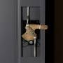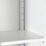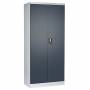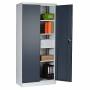 Opbevaringsskab SKD 800 mm med lige tag. Signalhvidt kabinet, RAL 9003 og antracit døre, RAL 7016 i pulverlackeret stål. Dørsæt med spanjoletlås. Indretning med 5 hylder, hvoraf 4 er flytbare. Skaben levereres usamlet. Totalmål (bxdxh) 800 x 435 x 1800 mm