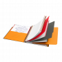 Filingbook i A4+, tæt linjeret med margin, perforeret og udstanset med 4 huller, 200 sider. Med det lette, glatte og hvide Optik Paper® i 80 g/m2 kan du skrive på begge sider af arket, uden at blækket bløder igennem. Siderne er udstyret med smart linjering og sidehoved, hvor du kan skrive mødets emne eller en overskrift foruden datoen, samt dobbelt margen, så du kan nummerere eller fremhæve punkter. Robust, sort dobbeltspiral i ryggen sikrer holdbarheden og gør det samtidig muligt at lægge notesbogen fladt mod underlaget eller at åbne den helt op, hvilket sikrer maksimal komfort og fleksibilitet. Det hårde, orange omslag i overstørrelse er robust og beskytter dine noter ekstra godt. Arkene er kompatible med den gratis Scribzee®-smartphoneapp, så du nemt kan scanne, gemme og organisere dine noter. OXFORDs eksklusive Optik Paper® har både fået EU's miljømærke (lav miljøbelastning fra de papirfabrikker, der producerer papiret) og PEFC™-certificering (bæredygtig skovforvaltning). Takket være de 4 farvekodede afsnit kan du nemt organisere dine noter efter emne. De 3 udtagelige skillesider af polypropylen gør det nemt at holde forskellige projekter adskilt og at finde første blanke side. Dokumentlomme til A4-dokumenter, notater og mindre genstande som visitkort.