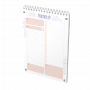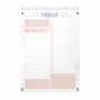 A5-format – Bredde: 14,8 cm x Højde: 21 cm. 70 ark – Optik Paper-kvalitet, ekstra hvidt satin-papir. Et layout med 2 kolonner, den ene til aftaler eller aktiviteter og den anden til opgaver. Fleksibelt, uigennemsigtigt omslag i "Soft Touch"-lamineret karton. Hvid dobbeltspiral. Omslagets farve: lilla blomstermønster. PEFC-certificeret – Dette produkt kommer fra bæredygtigt forvaltede skove og kontrollerede kilder. Kompatibel med den gratis SCRIBZEE-app.