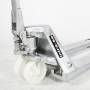 Galvaniseret palleløfter VL med kapacitet 2500 kg og gaffellængde 1150 mm. Palleløfteren har nylonhjul både under gaflerne og som styrehjul. Nylonhjul er letrullende hjul og er gode til tung belastning på hårdt og jævnt underlag. Derudover har de en høj modstandsdygtighed over for kemikalier, er non-marking og foretrækkes ofte i den kemiske, fiske- og fødevareindustri. Boggiehjul er en fordel ved håndtering af tungere belastninger på ujævnt underlag. Hjulene fordeler vægten over en større overflade, hvilket giver bedre stabilitet og mindsker slid på underlaget. Velegnet til kørsel på ramper, over tærskler mm. Palleløfteren i galvaniseret design er et noget mere prisbilligt alternativ til rustfri versioner, og er specielt beregnet til brug i korrosive miljøer. Alle ståldele er varmgalvaniserede og har længere levetid end traditionelle, malede palleløftere.