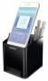 Denne premium kvalitets penneholder fra Leitz har en uventet lyd booster funktion, når du sætter din smartphone i forreste rum. Unik designet penneholder - opbevar dine skriveredskaber på en stilfuld måde og spar også plads. God plads til skriveredskaber, linealer, stylus mm. Ekstra rum til smartphone op til iPhone 6 plus størrelse - hjemmet til din telefon så du altid kan finde den. Smartphone rum med lydbooster funktion - forøger volumen på lyden på din smartphone. Smartphone skærmen forbliver komplet synlig, når den er placeret i penneholderen.