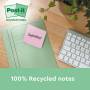 Post-it® Recycled Notes er fremstillet af 100 % genbrugspapir. Disse sticky notes er PEFC RECYCLED-certificerede og stammer fra certificerede, fornybare og bæredygtigt forvaltede skove. Der er anvendt et klæbemiddel fra fornybare råvarer, hvor 60 % kommer fra flerårige planter. Kabinetpakken med assorterede farver er let at åbne og opbevare i en skuffe eller et skab, så blokkene er lige ved hånden, når du har brug for dem. Disse sticky notes måler 76 mm x 127 mm og fås i en pakke med 16 blokke med 100 ark (uden film om hver enkelt blok for at reducere emballagen).