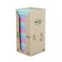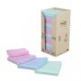 Post-it® Recycled Notes er fremstillet af 100 % genbrugspapir. Disse sticky notes er PEFC RECYCLED-certificerede og stammer fra certificerede, fornybare og bæredygtigt forvaltede skove. Der er anvendt et klæbemiddel fra fornybare råvarer, hvor 60 % kommer fra flerårige planter. Kabinetpakken med assorterede farver er let at åbne og opbevare i en skuffe eller et skab, så blokkene er lige ved hånden, når du har brug for dem. Disse sticky notes måler 76 mm x 76 mm og fås i en pakke med 16 blokke med 100 ark (uden film om hver enkelt blok for at reducere emballagen).