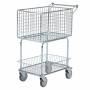 Klassisk el-galvaniseret kurvevogn / postvogn med plasthåndtag. Vognen er meget populær til butikker, skoler, kontorer og let lagerplukning. Især populær i butikkerne, fordi den er fleksibel i trange rum, kurvene rummer meget og holder varerne på plads. Vognen er udstyret med 4 stk. drejelige hjul heraf 2 stk. er udstyret med bremse, hvilket er meget praktisk ved ind- og udlæsning af vognen.
