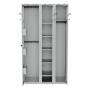 Kombination G består af 3 skabssektioner med bredder på 400 + 300 + 300 mm.Den venstre sektion, med en bredde på 400 mm, er indrettet med to tøjstænger, hver med fire ophængskroge, samt tre hylder i døren. Venstrehængt dør med dørknop.Sektionen i midten, med en bredde på 300 mm, har fem flytbare hylder. Højrehængt dør forberedt til lås.Den højre sektion er et garderobeskab med en bredde på 300 mm, indrettet med hattehylde, tøjstang og fire kroge. Højrehængt dør forberedt til lås.Til dette skab kan du vælge overskab og alle standard understel med 1000 mm bredde, samt Eurolock og ASSA cylinderlås eller greb til hængelås.PR2 er økonomiversionen af vores PRO-skabe, leveret med T01 enkel ståldør og enkle tøjkroge ophængt på et ovalt ophængsrør. Lang tøjkrog på ydersiden af dørene og en kort på indvendig side af dørene.