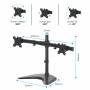 En fritstående monitorarm med plads til to skærme er løsningen, når det ikke er muligt at fastgøre armen. Basen har en vægt, der sikrer stabilitet. Denne passer skærme op til 8kg / 27 tum (per skærm). Kabelhåndtering holder styr på alle ledninger. VESA monteringsplade til 75x75 og 100x100.Yderligere specifikationer: Rotation: 360° Tilt: +/- 45°Maximum height: 46.5cmMaterial Type: MetalWarranty: 3YrTested by FIRA International Ltd to comply with the ergonomic requirements set out in European Health and Safety Legislation: EN ISO 9241-5.