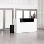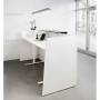 DNA er en komplet receptionsdisk, her i hvid laminat udførelse og med hæve-sænke arbejdsbord på 1630 mm, samlet størrelse på receptionen er (b x d x h) 1730 x 870 x 1225 mm. Den store indvendige arbejdsflade har en dybde på 730 mm og med elektrisk højdejustering, arbejdshøjde 625 - 1275 mm.