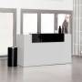 DNA er en komplet receptionsdisk, her i lys grå laminat udførelse og med hæve-sænke arbejdsbord på 1630 mm, samlet størrelse på receptionen er (b x d x h) 1730 x 870 x 1225 mm. Den store indvendige arbejdsflade har en dybde på 730 mm og med elektrisk højdejustering, arbejdshøjde 625 - 1275 mm.