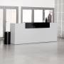 DNA er en komplet receptionsdisk, her i lys grå laminat udførelse og med hæve-sænke arbejdsbord på 2500 mm, samlet størrelse på receptionen er (b x d x h) 2600 x 870 x 1225 mm. Den store indvendige arbejdsflade har en dybde på 730 mm og med elektrisk højdejustering, arbejdshøjde 625 - 1275 mm.