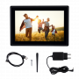 Smart Digital Photo Frame with App Function Quick and easy transmission of photos or videos to the digital photo frame via the free Frameo app 10.1-inch screen diagonal, touchscreen and IPS panel Various functions, such as import and export function from and to storage medium, import function from computer, automatic andmanual rotation function, frame adjustment function, reaction function, caption function, time function, weather function, hidingfunction and sleep mode function microSD memory card slot and micro-USB connection Can be mounted standing or hanging, horizontally or vertically