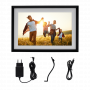 Smart Digital Photo Frame with App Function and Colorful LED Light Flexible transfer: From Frameo app, memory card, USB memory or computer High-quality display: 10.1-inch screen diagonal, IPS panel and touchscreen Many functions: Colorful LED light on the back, rotate, customize, label, clock, weather, sleep mode Flexible placement: Standing or hanging in landscape or portrait format Stylish design: Black frame and white passe-partout for a classic photo frame look