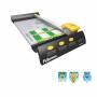 En rulleskæremaskine som passer til privat brug eller på et mindre kontor. Kniven ligger beskyttet, når den ikke er i brug for øget sikkerhed. Indeholder fire typer af SafeCut™ knive: lige, bølget, perforeret og sammenfoldeligt. Kan skære op til 10 ark (80g) samtidig. Papirklemme holder papiret på plads under brug. Cutting Length (mm): 320. Item H x W x D (cm): 47.50 x 21.00 x 8.00. Der kan tilkøbes flere bladtyper/klinger: Wave, Perf & Fold (art nr 743801) eller 2-stk lige klinger (art nr 743802)