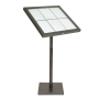 Informationsdisplay med 135 cm stolpe og base – Udstiller 6xA4 ark. Inkluderer: • Solidt display panel i belagt stål • Securit® COATED STEEL Stander: 135 cm stolpe og base i sort • Hvid LED-belysning for øget synlighed (kan dæmpes) • Magneter til let montering af indhold • Sikker låsemekanisme til beskyttelse af indhold • Fjernbetjening for nem justering af lysstyrke • 5 m kabel • Vægbeslag til montering Tilvalg (ekstra køb): • Securit® Genopladeligt Batteri – Trådløs strømforsyning til mobile opsætninger • Securit® Basehjul – Flyt displayet uden besvær Perfekt til: • Restauranter, caféer, barer & hoteller – Præsenter menuer, kampagner eller begivenheder. • Eventsteder & messer – Fremhæv programmer, vejvisning eller gæsteinformation. • Sportsforeninger & klubber – Vis kampprogrammer, meddelelser eller sponsorbudskaber. • Bilforhandlere & showrooms – Promovér tilbud, specifikationer eller brandbudskaber. • Museer, teatre & kultursteder – Del udstillinger, forestillingsplaner og vigtige informationer. Fleksibel og brugervenlig • Justerbar belysning – Skab den perfekte atmosfære, tilpas lysstyrken nemt med den medfølgende fjernbetjening. • Flere strømforsyningsmuligheder – Brug det medfølgende 5-meters strømkabel for en enkel opsætning eller tilkøb det anbefalede Securit® Genopladeligt batteri for trådløs brug – ideelt til foodtrucks, pop-up events og udendørs promovering, på områder hvor der ikke er stømforsyning. Lys dit budskab op med stil og funktionalitet Når mørket falder på, har fine dining-restauranter, boutiquehoteller og stilfulde vinbarer brug for en oplyst display, der skiller sig ud uden at dominere omgivelserne. Securit® COATED STEEL Informationsdisplay balancerer elegance og synlighed, så menuer, kampagner eller vigtige beskeder altid præsenteres på bedste vis. Elegant, professionelt i alt slags vejr Med en sofistikeret Gun Grey-finish og vejrbestandigt belagt stål tilføjer dette display et eksklusivt touch til enhver lokation. Uanset om det monteres udenfor en moderne brasserie, et eksklusiv steakhouse eller et high-end eventsted, sikrer det en skarp, indbydende og oplyst præsentation af dit indhold. Den låsbare konstruktion beskytter mod uautoriseret adgang og er ideel til områder med meget trafik. Til gastronomi, events og mere I en pulserende verden af restauranter, hoteller, sportsforeninger, kulturinstitutioner og detailhandel er førstehåndsindtrykket afgørende. Uanset om du driver en hyggelig café i København, en eksklusiv restaurant i Aarhus, en sportsforening i Odense, et bilshowroom i Aalborg eller et eventsted i Frederiksberg, er tydelig og stilfuld kommunikation vigtig. Securit® COATED STEEL Informationsdisplay kombinerer æstetik og funktionalitet, så dine menuer, kampagner eller budskaber altid står skarpt. Den justerbare hvide LED-belysning forbedrer læsbarheden uden at forstyrre atmosfæren, hvilket gør den effektiv både i dagslys og dæmpet aftenbelysning. Perfekt til enhver forretning eller mødested Fra travle storbycafeer og intime bistroer til eksklusive restauranter, sportsklubber, moderne madmarkeder og museer – Securit® COATED STEEL Informationsdisplay integreres problemfrit i ethvert miljø. Dets minimalistiske sorte design udstråler sofistikation og professionalisme og passer perfekt til et stilrent og funktionelt udtryk.