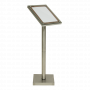 Informationsdisplay med 85 cm stolpe og base – Udstiller 1xA4 ark Inkluderer: • Vejrbestandig, display panel i lamineret valnød • Securit® STAINLESS STEEL Stander: 85 cm stolpe og base • Krystalklart sikkerhedsglas med rustfri stålkant • Vægbeslag til montering Anbefalet tilkøb: • Securit® LED-lampe – Sikrer synlighed døgnet rundt • Securit® Genopladeligt batteri – Trådløs strøm til mobile opstillinger • Securit® Basehjul – Nem flytning og fleksibel placering Perfekt til: • Restauranter, caféer, barer & hoteller – Fremvis menuer, kampagner eller begivenheder • Eventsteder & messer – Præsenter tidsplaner, vejvisning eller gæsteinformation • Sportsforeninger & klubber – Vis kampplaner, opslag eller sponsorbudskaber • Bilforhandlere & showrooms – Promover tilbud, bilspecifikationer eller brandkommunikation • Museer, teatre & kultursteder – Del udstillinger, programoversigter og vigtig besøgsinformation Styrk din virksomheds synlighed • Tidløst design – Elegant valnød med klart glas og rustfri ståldetaljer, ideelt til hoteller, caféer, fine dining-restauranter, events, klubber, bilforhandlere og kultursteder. • Vejrbestandig & holdbar – Modstandsdygtig over for regn, vind og kulde, sikrer klarhed året rundt. • Krystalklar synlighed – Beskytter og præsenterer menuer, kampagner og annonceringer med stil. • Tilpasset dit brand – Fås i flere størrelser og farver for at matche din visuelle identitet. Til gastronomi, events og meget mere I den dynamiske verden af restauranter, hoteller, sportsforeninger, kultursteder og detailhandel er førstehåndsindtryk afgørende. Uanset om du driver en hyggelig café i Stockholm, en eksklusiv restaurant i København, en sportsklub i Oslo, et bilshowroom i Helsinki eller et eventsted i Göteborg, er stilfuld og tydelig kommunikation nøglen. Glass Star Informationsdisplay kombinerer æstetik med funktionalitet, så dine menuer, kampagner eller vigtige budskaber altid er synlige. Passer til enhver forretning eller mødested Fra travle bycaféer og moderne food markets til sportsforeninger, fine dining-restauranter, museer og teatre – dette display integreres ubesværet i enhver omgivelse. Det minimalistiske design udstråler professionalisme og elegance og passer perfekt til en stilren, funktionel og moderne æstetik.