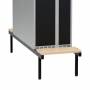 Siddebænk med birk laminat med en bredde på 500 mm og en dybde på 1100 mm. Siddebænken leveres med justerskruer til ujævne gulve, i sortlakeret udførelse med birk, og monteres nemt. Siddebænken har en højde på 320 mm, som kommer oveni skabets højde.Understellet er tilpasset skabe med en dybde på 550 mm og en bredde på 500 mm, og er beregnet til to skabe placeret ryg mod ryg i dobbeltrække.