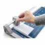 Hobby skæremaskine i god kvalitet med anlægsbord fremstillet af metal. Skærelængde: 460 mm. Skærehøjde: 0,5 mm. Som Dahle 507 men med skærelængde på 460 mm så du kan skære A3 på den lange led. Grå/Blå. God hobby skæremaskine med anlægsbord fremstillet af metal. Med håndpresse og rundkniv. • Skærelængde: 460 mm • Skærehøjde: 0,5 mm (4 ark 80 gram papir) • Anlægsbord Ydermål: 580 x 211 mm • Vægt: 1,55 kg