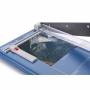 Kompakt hobby skæremaskine i absolut bedste kvalitet. Solid metalkonstruktion med afrundede hjørner og gummifødder, som holder maskinen på plads under arbjedet. Klarer også A3 på den lange led. Skærelængde: 460 mm. Skærehøjde: 1,5 mm. Som Dahle 533 men med skærelængde på 460 mm så du også kan skære A3 på den lange del. Her får du rigtig meget for pengene. Med en skærehøjde på 1,5 mm kan du skære op til 13 ark 80 grams papir ad gangen. Skærelængden på 460 mm giver dig mulighed for at skære A3 på den lange led! Arkene holdes på plads med en manuel håndpresse. Anlægsbordet er inddelt i standard formater og med lineal for nem og hurtig skæring. • Skærelængde: 460 mm • Skærehøjde: 1,5 mm (13 ark 80 gram papir) • Anlægsbord Ydermål: 550 x 280 mm • Over- og underkniv af højkvalitets Solingen stål • Med anlægskant vinkelret på kniven, så du er sikret er perfekt resultat • Justerbart bagstop garanterer ensartet skæring af større oplag • Vægt: 4,9 kg